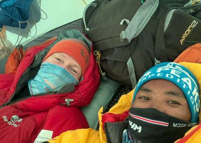 Und dann auch noch ein mehr als schwieriger Start: Halsschmerzen, Erkältung und Sonnenstich. Eine Schwächung zur Unzeit. Aber der Sturm am Berg zwang uns zu mehreren Ruhetagen im Basislager und in den Hochlagern, welche mir mehr als gut taten und mich gut erholen liesen. Meine Kräfte und auch meine Zuversicht kamen zurück, und es ging weiter.