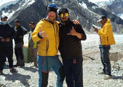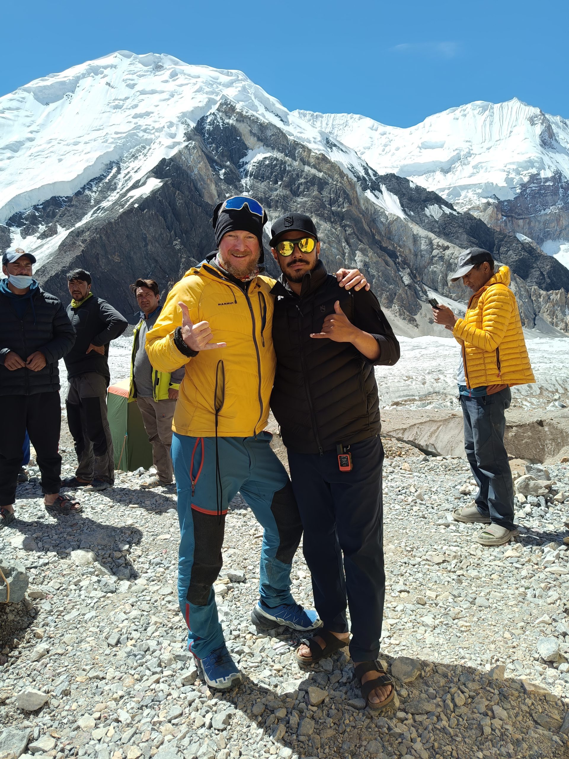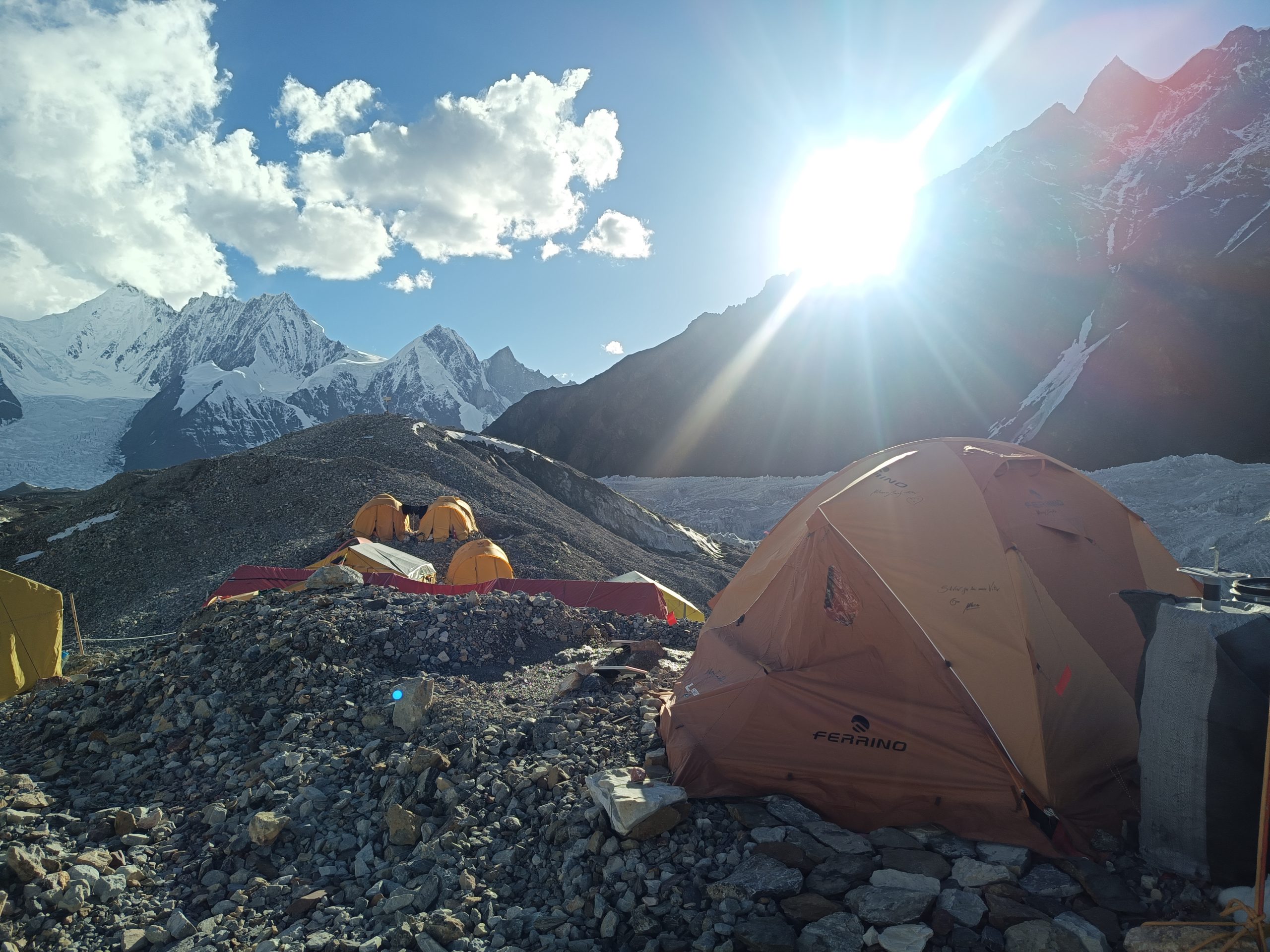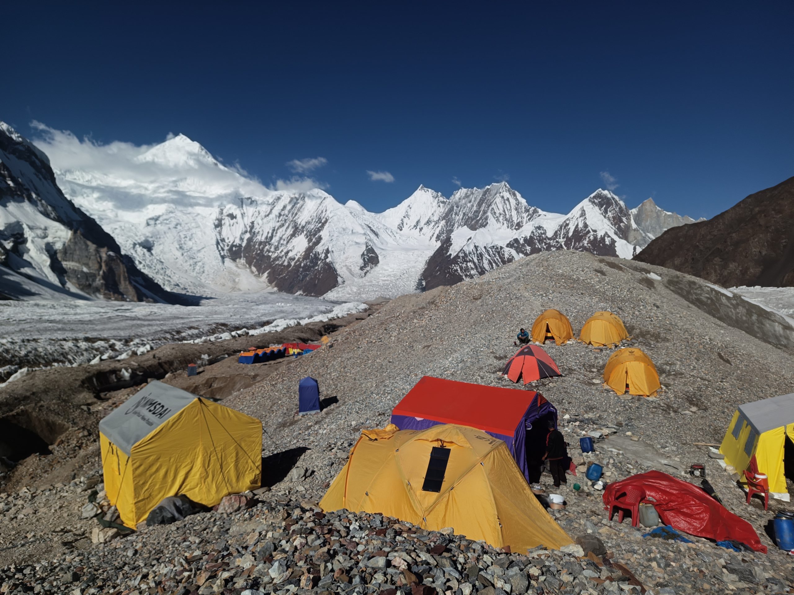 Auf dem Weg nach unten rutschten wir alle drei mahrfach in Gletscherspalten, am Seil hängend von den anderen wieder rausgezogen. Nach 9 Stunden sind wir dann fix und fertig im Basislager angekommen. Damit war das Gipfelziel leider endgültig erledigt. Aber auch den anderen Expeditionen am Berg erging es nicht anders, was sicherlich kein Trost war. Auch, dass in der Saison 2025 keine andere Expedition den Gipfel des 13-höchsten Berges der Welt erreicht hat.