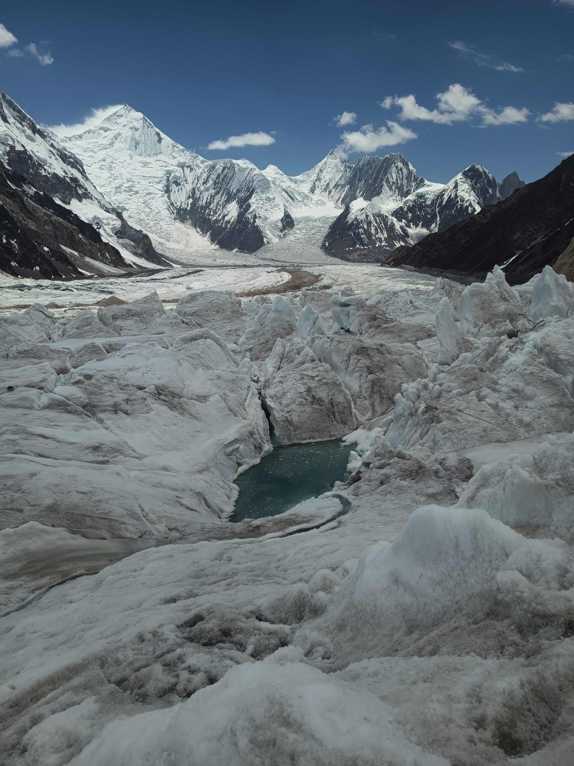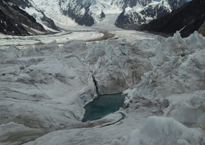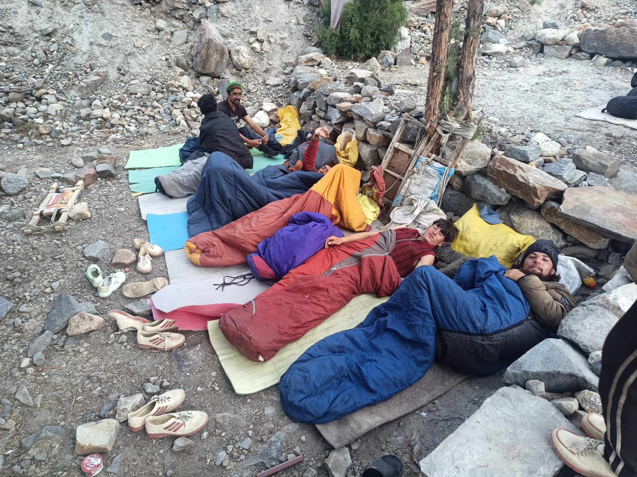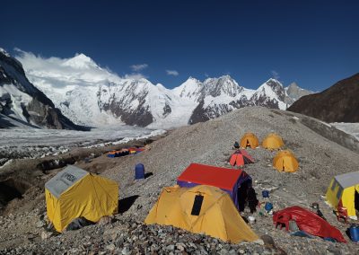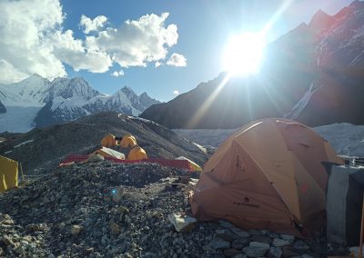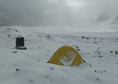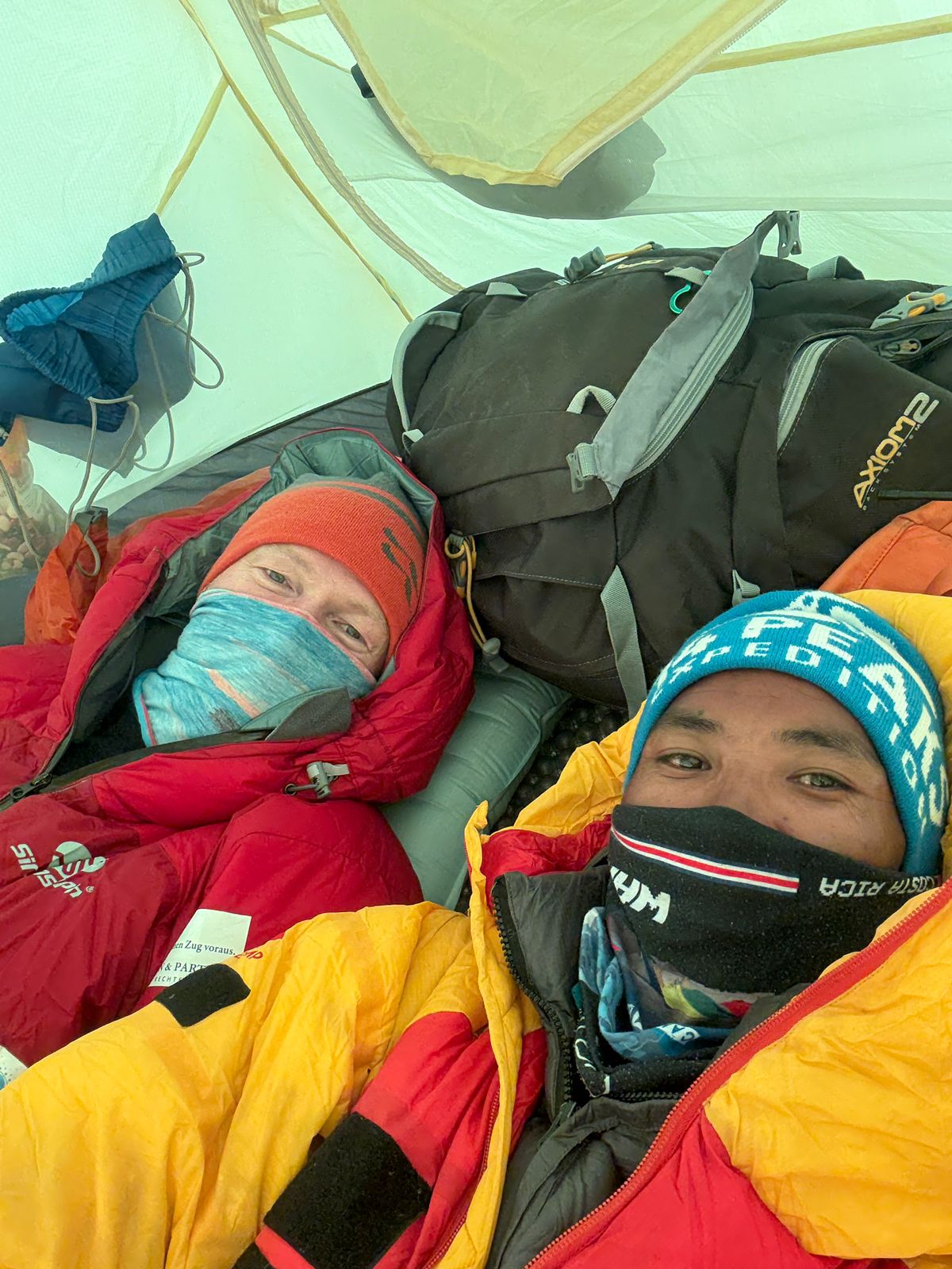 Auf dem Weg nach unten rutschten wir alle drei mahrfach in Gletscherspalten, am Seil hängend von den anderen wieder rausgezogen. Nach 9 Stunden sind wir dann fix und fertig im Basislager angekommen. Damit war das Gipfelziel leider endgültig erledigt. Aber auch den anderen Expeditionen am Berg erging es nicht anders, was sicherlich kein Trost war. Auch, dass in der Saison 2025 keine andere Expedition den Gipfel des 13-höchsten Berges der Welt erreicht hat.